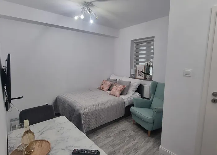 Letni tor saneczkowy Kolorowa znajduje się 2 km od tego apartamentu, a do Centrum Karpacza jest w minucie jazdy. Z 1-pokojowego apartamentu można w 15 min dojść do centrum miasta.